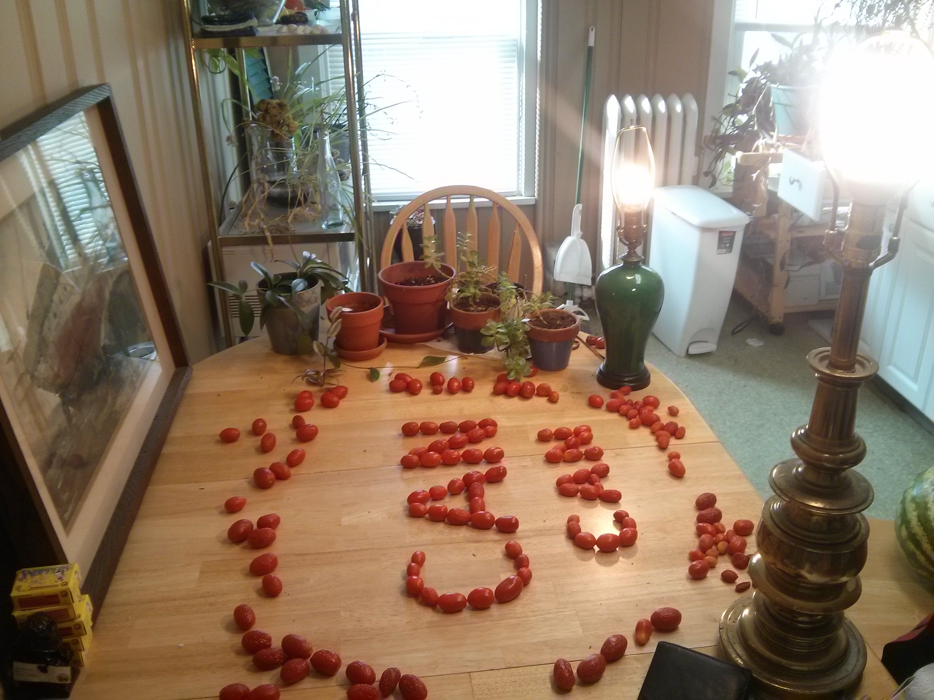 At first when creating Today we answer the question: Tomatoes: Salad PARTer or Conversation stARTer?, which later also took the twitter title, Tomato story-time with @SnoopDogg and other featured word players, I was thinking I would provide some tomato context as part of it: Garden tomatoes picked before the last frost. Left to sit on the table as they ripened. Two months pass. Two thirds remain. Wrinkled prunes on fire. Ready. Waiting. To tell their story. One word, next word, next word, Go!