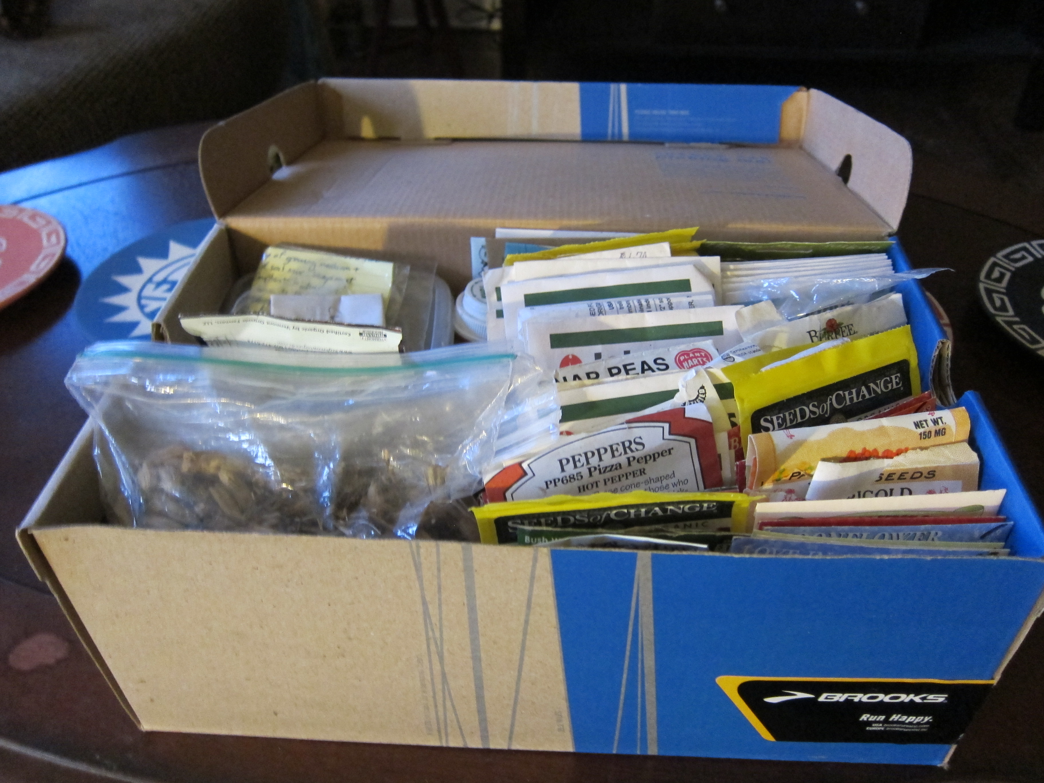 And then so what to plant? To the farmers’ market! The market!…For some plugs to transplant. And to the box! The box! …For the collection of seeds I’d accumulated over time by purchase (most of them), by gift (a few), or by end-of-season collecting (a handful).